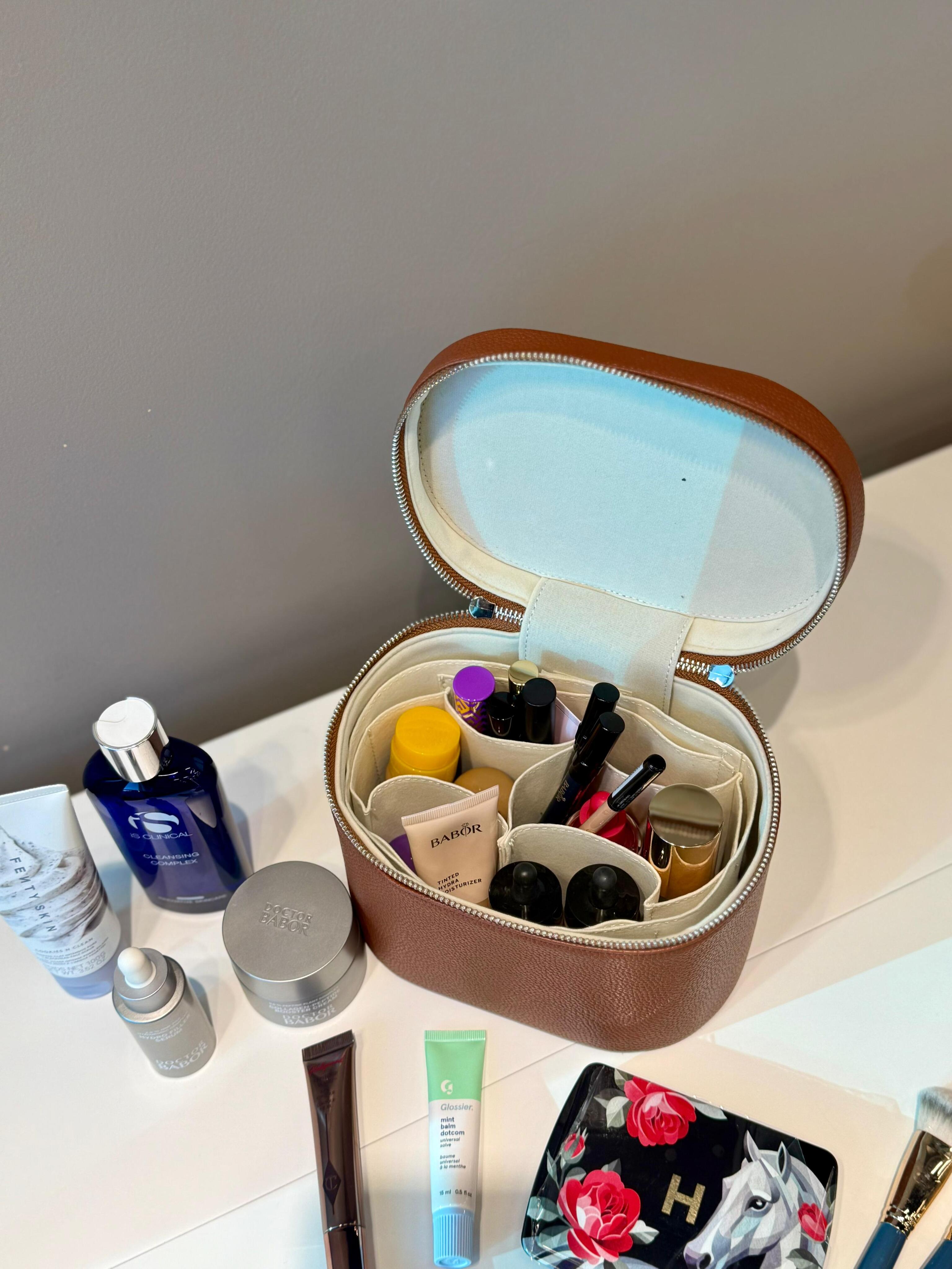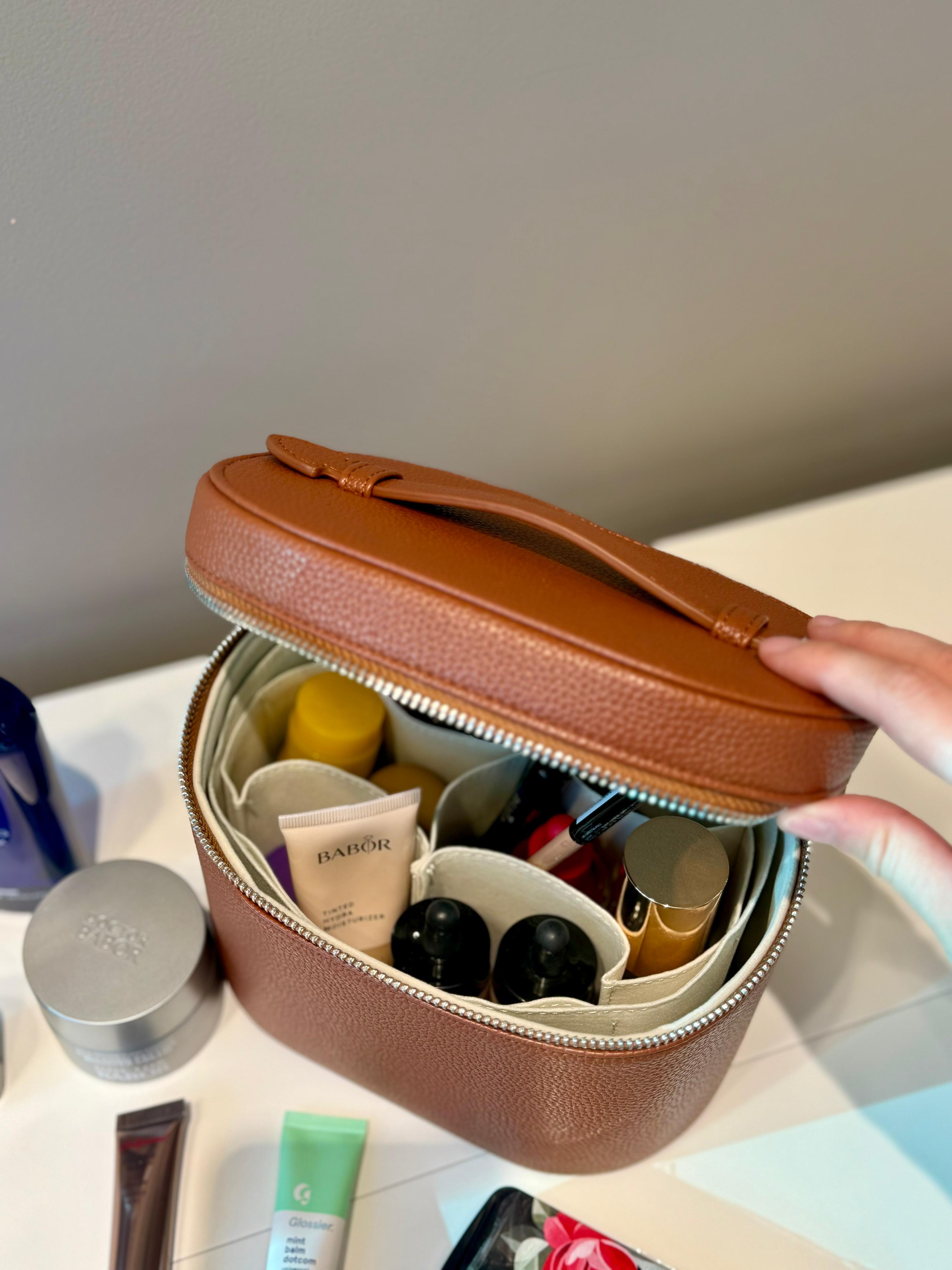 Элегантный дизайн и продуманные детали делают её универсальной для любой женщины, ценящей качество и эстетику- идеальный аксессуар для хранения косметики дома и в путешествиях.