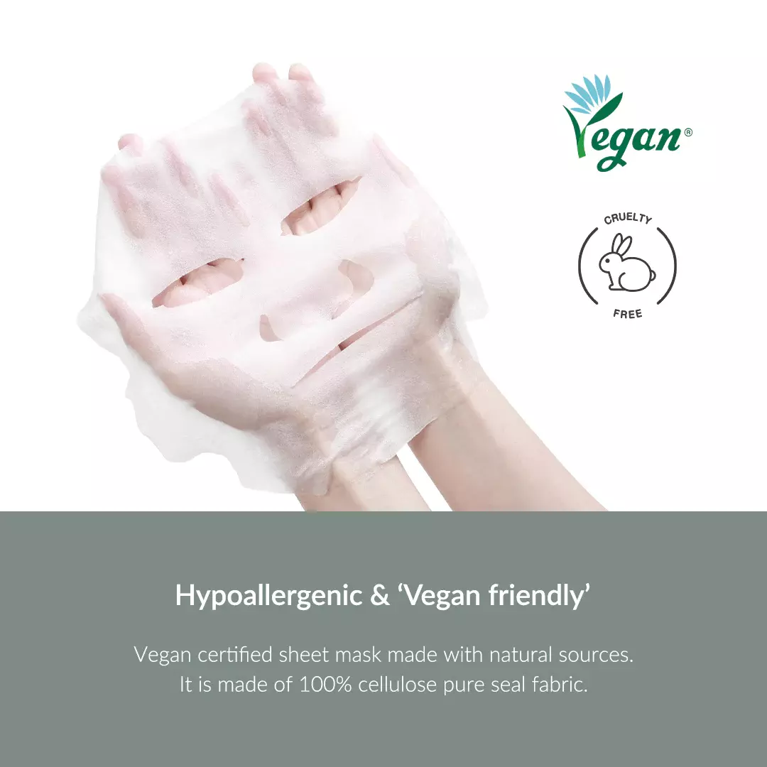 Эссенция, которой пропитаны маски, уменьшает покраснение и сглаживает микрорельеф, придаёт эластичность, предотвращает сухость и обезвоженность. Растительная тканевая основа мягко прилегает, средство подходит для чувствительной кожи.