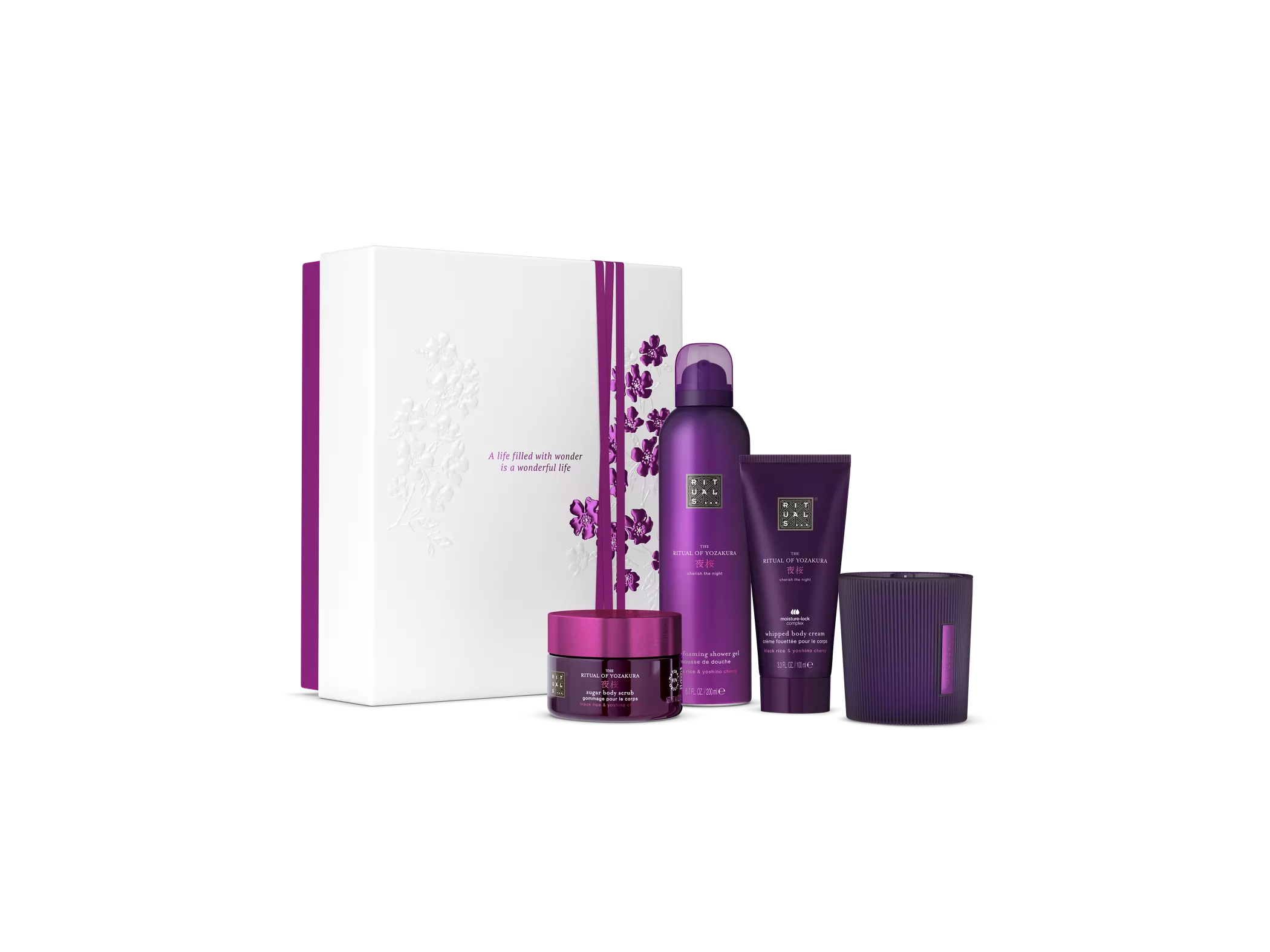 Достигните внутренней гармонии с помощью этих успокаивающих и ароматных продуктов, которые обогащены чувственным сочетанием японской майской вишни, теплой амбры и ванили.