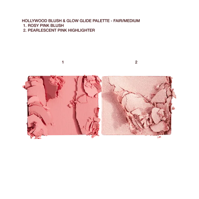 Это всё, что нужно для создания сияющего лука в голливудском стиле. Палетка сочетает пигментированный румянец и мягко отражающий свет хайлайтер, чтобы придать лицу тепло, рельеф и эффектное свечение.