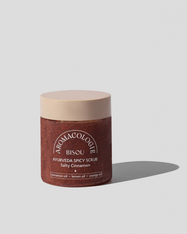 Желейный скраб из смеси органического сахара и морской соли, пропитан пряными маслами корицы, апельсина и лимона, бережно очищает кожу и производит аромамассаж.